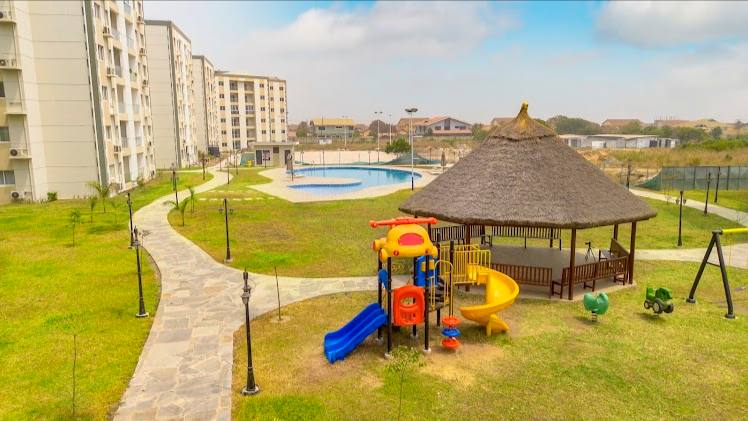 Alphabet City Waylead Apartments in Sakumono offers modern living in a gated community. Conveniently located near Junction Mall, Tema, Nungua, Spintex, and VRA/Valco Estates. Enjoy amenities including a lush landscaped garden, private picnic area, swimming pool, children's playground, and multipurpose sports court.