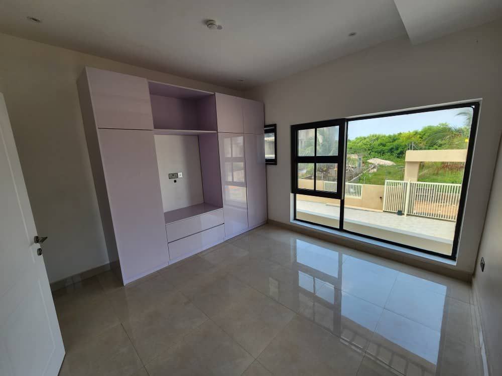 Serenity Suites Daystar offers the perfect blend of luxury and convenience. Just 4km from Kotoka International Airport, 2km from Labadi Beach, and close to international schools and golf courses. This smart home features a rooftop terrace, communal gym and swimming pool, and self-compound living with parking for 3 cars. Monthly rate available at $2000.